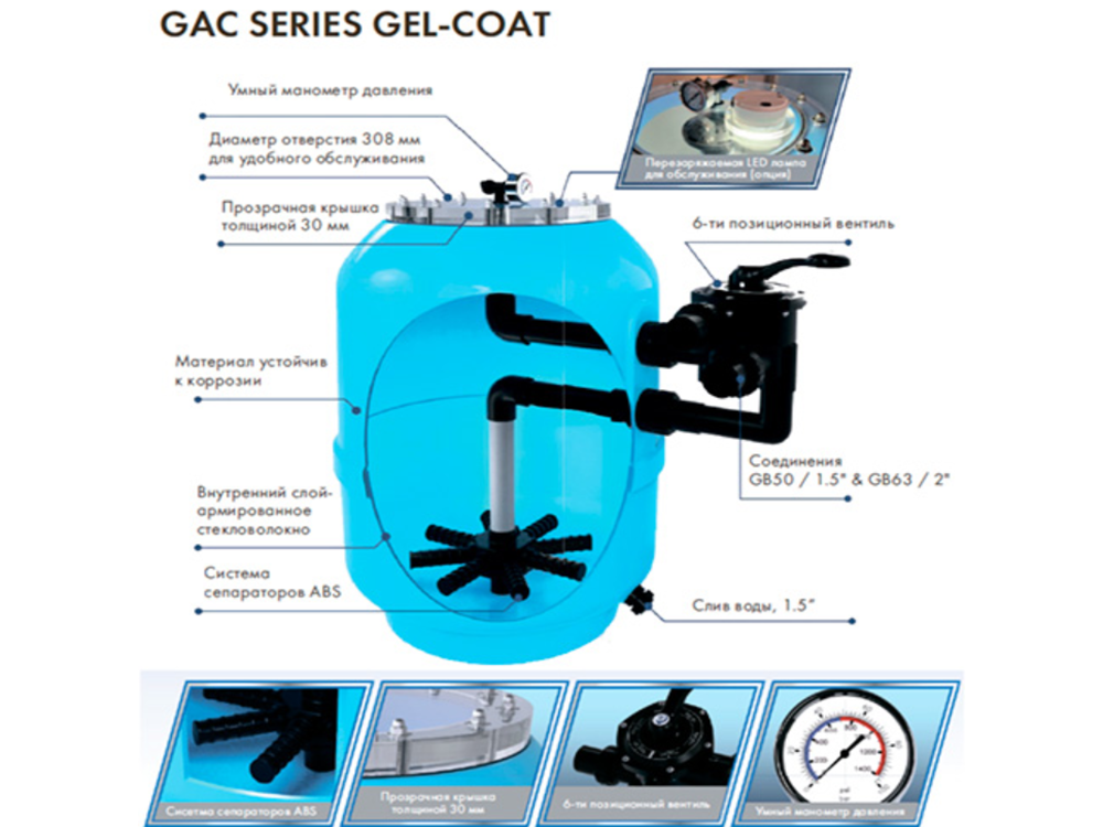 Песочные фильтры Emaux GAC 500 представляют премиальную серию от производителя Emaux. Ламинированный корпус оснащен широким загрузочным отверстием, что облегчает загрузку/выгрузку фильтрующего материала.